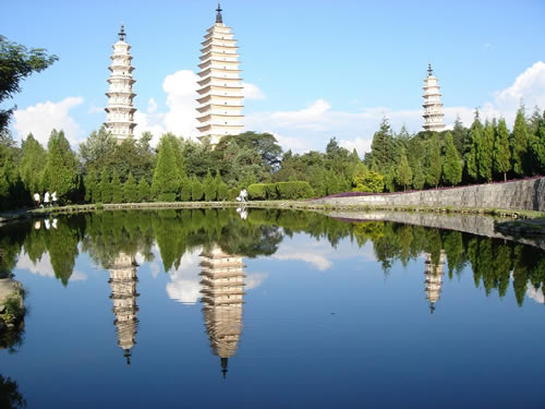 崇圣寺以寺中三塔聞名于世,又稱“大理三塔”;是中國著名的佛塔之一,一九六一年被列為國家重點文物保護單位。它似三支巨筆,把古城點綴得更加壯麗,使蒼洱風光增添了不少光彩。三塔歷來都是大理的象征。是舊時崇圣寺(即金庸武俠小說《天龍八部》中所云“天龍寺”)前的建筑,今古剎無存,唯此三塔依然鼎足矗立。三塔是云南現存最古老的建筑物之一,也是在國內享有盛名的塔群。