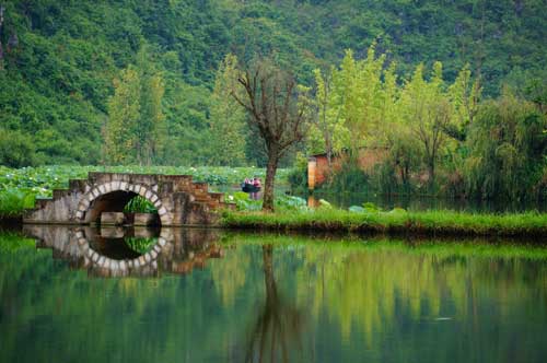 普者黑景區,壯文名稱為 Dieg Langh Bwengz Cangh Gwj,其位于云南省文山壯族苗族自治州丘北縣境內,距縣城13公里,是國家級風景名勝區、國家AAAA級旅游景區。景區總面積388平方公里,核心景區165平方公里,屬于滇東南巖溶區,是發育典型的喀斯特巖溶地貌,以“水上田園、湖泊峰林、彝家水鄉、巖溶濕地、荷花世界、候鳥天堂”六大景觀而著稱,這里既有桂林山水孤峰、清流、幽洞、奇石的靈秀,又有江南水鄉小橋、流水、人家的古樸神韻,還有杭州西湖波光瀲滟的明麗,更有比荷花淀還要浩蕩的萬畝荷花。景區內265個景點各具千秋,312座孤峰星羅棋布,83個溶洞千姿百態,54個湖泊相鏈貫通,2萬畝水面清澈透明,13公里大峽谷雄險壯觀,3公里茶馬古道神秘古樸,4萬畝高原喀斯特濕地讓人嘆為觀止。景區民族文化底蘊豐厚,壯、苗、彝等少數民族濃郁的民族民間文化構成了普者黑旅游文化的主流。景區現已具備觀光、度假、養生、休閑、騎行、寫生、攝影、垂釣、觀鳥、濕地體驗等眾多旅游體驗。景區內普者黑村是2013湖南衛視大型親子秀節目《爸爸去哪兒》第一季第三個外景拍攝地。