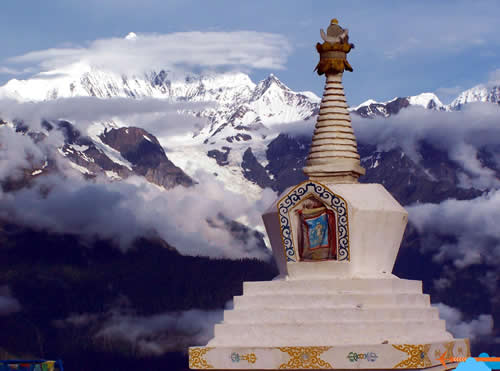 梅里雪山,位于云南迪慶藏區德欽縣境內,為云南與西藏的界山。主峰卡瓦格博海拔6740米,為云南第一高峰,峰型有如一座雄壯高聳的金字塔,時隱時現的云海更為雪山批上了一層神秘的面紗。被譽為雪山之神的卡瓦格博作為藏區八大神山之首,享譽世界。 卡瓦格博的高聳挺拔之美以及在宗教中的崇高而神圣的地位吸引了無數的中外旅游者和登山者。然而,從二十世紀初至今的歷次大規模登山活動無不是以失敗告終。1991年,中日聯合登山隊對主峰發起了沖擊,他們從三號營地出發沖頂,上升至海拔6700米時天氣突然變得惡劣只好下撤準備第二天繼續沖頂。然而當晚當隊員與大本營進行過最后一次語音聯系后遭遇大規模雪崩,所有隊員全部遇難,長眠在了卡瓦格博。部分遺體于數年后被放牧的藏民在主峰另一側的大冰板發現。人類對雪山之神征服的嘗試又一次以徹底的失敗告終。從此也更讓人領會到藏族同胞對人與自然關系更為真誠和深刻的理解:人只有尊重自然愛護自然方能與自然和諧相處;人若一心與自然為敵,只意欲征服自然,則必將以滅亡告終。現在,在梅里雪山下各個旅館和寺廟中,常能見到藏族同胞呼吁禁止攀登雪山的倡議書,其行文簡潔,話語犀利,其中卻實有深意。